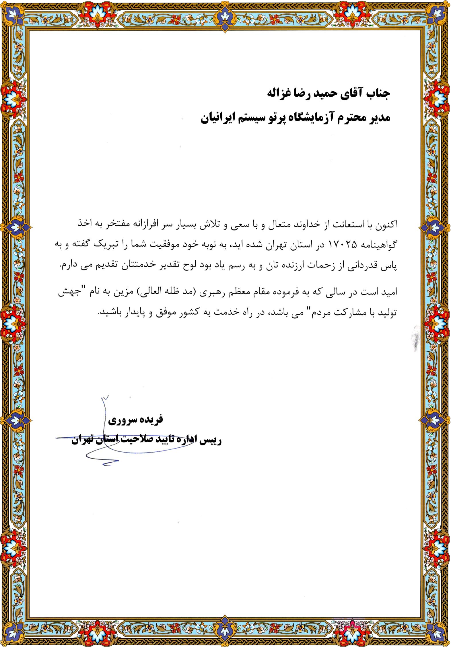سازمان اعطا کننده: اداره تایید صلاحیت استان تهران